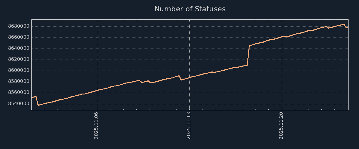 # Akkoma # Statistics 2025-11-24 09:00 CET